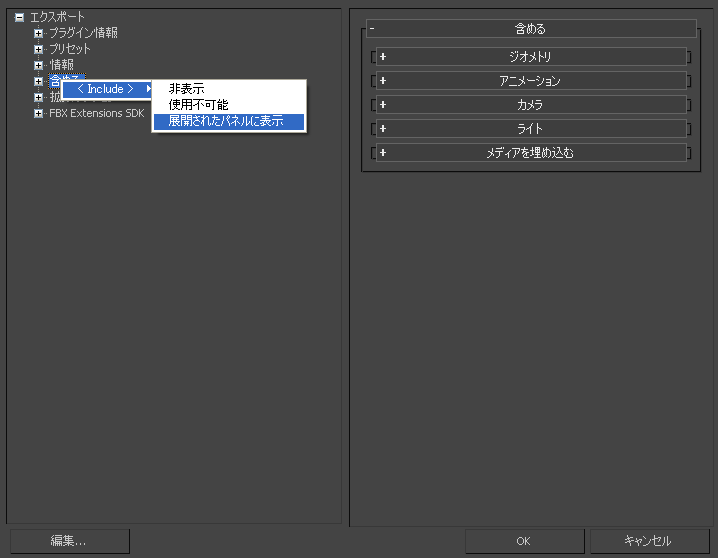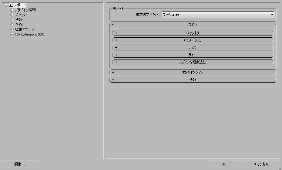 プリセット ファイルには拡張子 .fbximportpreset (インポート用)や .fbxexportpreset (エクスポート用)が付き、My Preset.fbximportpreset のようなファイル名になります。