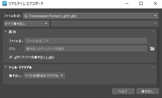 [リアルタイム エクスポータ](Real-Time Exporter)では、アセットを glTF 形式で書き出すこともできます。