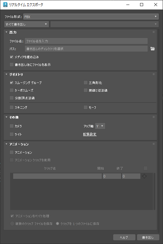 [リアルタイム エクスポータ](Real-Time Exporter)を使用すると、モデルおよびアニメーション クリップを簡単に書き出すことができます。