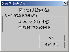 SHP ファイルを読み込むと、最初に[3DS 読み込み](3DS Import)ダイアログ ボックスが表示されます。このダイアログ ボックスは、3DS ファイルを読み込んだときに表示されるものと同じです。オプションを設定し、[3DS 読み込み](3DS Import)ダイアログ ボックスで[OK]をクリックすると、[シェイプ読み込み](Shape Import)ダイアログ ボックスが表示されます。