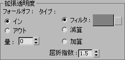 これらのコントロールは、透明なマテリアルの不透明度フォールオフに影響します。