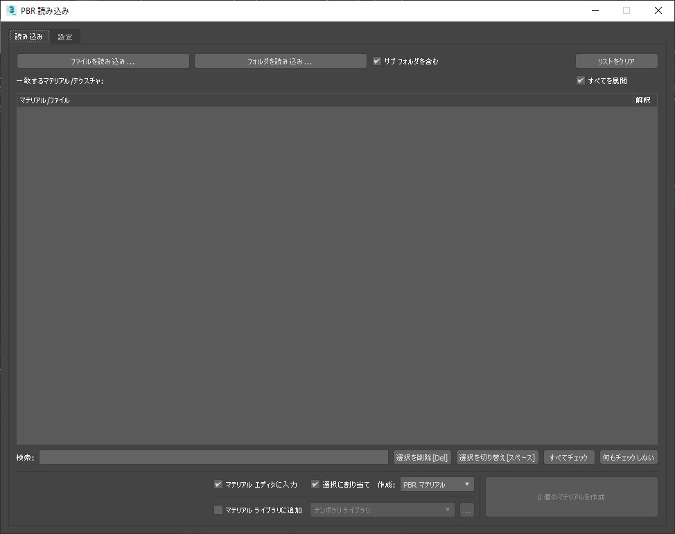 [PBR 読み込み](PBR Importer) - [読み込み] (Import)タブ