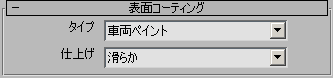 メタリック ペイント マテリアルには、常にクリア トップ コートが適用されています。このロールアウトの設定を使用して、トップ コートとそのテクスチャの輝度を調整できます。