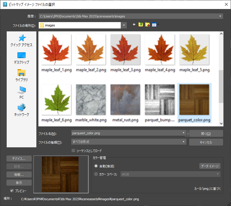 3ds Max で[ビットマップ イメージ ファイルの選択](Select Bitmap Image)ダイアログ ボックスが開きます。