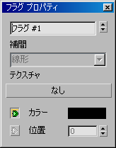 選択されたフラグの現在の位置を示します。スピナーを使用するか、値を直接入力して、フラグの位置を決定できます。開始フラグと終了フラグは移動できないので、[位置](Position)は使用できません。