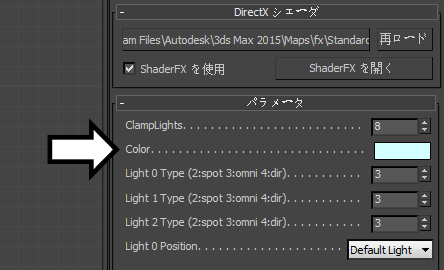 3. このアトリビュートは、マテリアル エディタ DirectX シェーダ マテリアルの[パラメータ](Parameters)ロールアウトで使用できるようになります。