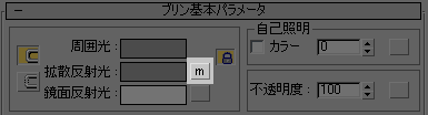 スカラー コンポーネント([鏡面反射光レベル](Specular Level)、[光沢](Glossiness)、[自己照明](Self-Illumination)、および[不透明度](Opacity)など)にマップを割り当てる場合、[基本パラメータ](Basic Parameters)ロールアウトにあるコンポーネントの値は、[マップ](Maps)ロールアウトにある関連するマップの[量](Amount)とブレンドされます。