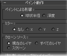 - [ペイント動作](Paint Behavior)ロールアウトを開いて、[クローン ソース](Clone Source)が[現在のレイヤ](Current Layer)に設定されていることを確認します。