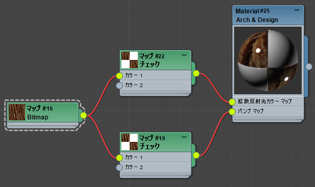 ビットマップとマテリアルの間のワイヤを右クリックし、[ブランチを固有にする](Make Branch Unique)を選択した後