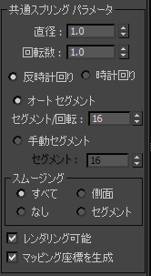 このオプションを選択すると、何度スプリングを回転させても、スプリングの長さには固定数のセグメントが含められます。 このため、回転数を増やす場合は、滑らかなカーブを維持するためにセグメント数を手動で増やす必要があります。