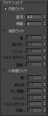 スプリングのワイヤ断面に 3 種類のタイプ(円形、矩形、D-シェイプ)を選択できます。 各タイプに、独自のパラメータのセットがあります。