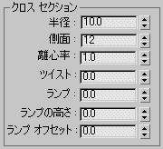 断面の半径のパーセントとして、ランプの高さを設定します。ただし、[ランプ](Lumps)の値は、効果が分るようにするには、0 より大きくなければなりません。