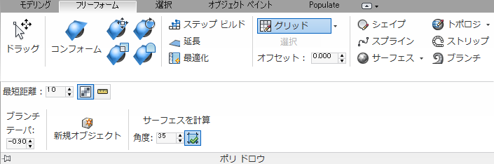 最大化されたリボンで展開された[ポリ ドロウ](PolyDraw)パネル