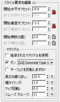 選択したマテリアルを要素の幅で繰り返す回数を設定します。 既定値は 1 です。