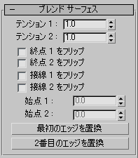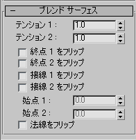 ブレンド サーフェス サブオブジェクトが選択されていると、ブレンドのパラメータのロールアウトが[修正](Modify)パネルの下部に表示されます。