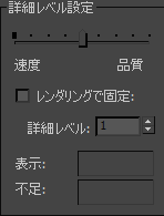 現在表示されているポイントの数、およびオブジェクトに含まれるポイントの合計は、それぞれ、[詳細レベル設定](Level Of Detail Setting)グループの下にある読み取り専用フィールド、[表示](Displaying)と[合計](Out Of)に表示されます。