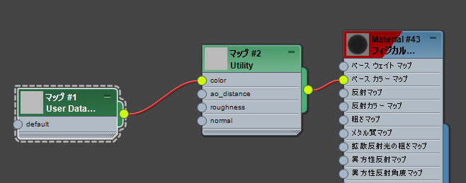 - ユーティリティ ノードをフィジカル マテリアルのベース カラー マップ入力に接続します。