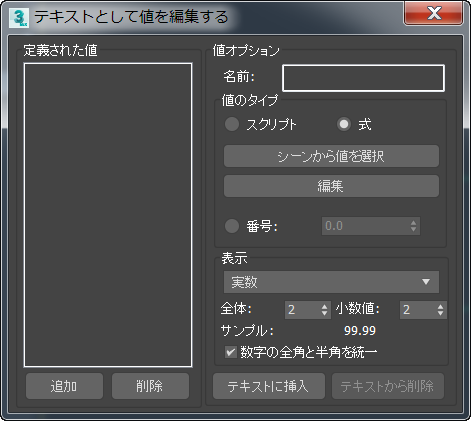 テキスト プラスを使用すると、オブジェクト変換、パラメータ、時間情報などの数値データを表示および更新できます。