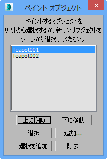 [オブジェクトを選択](Select Objects)ダイアログ ボックスが開き、リストからペイント オブジェクトを指定できます。