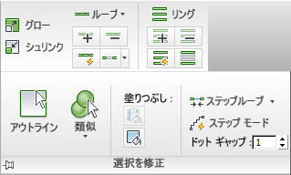 最小化されたリボンの[選択を修正](Modify Selection)パネル