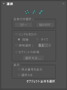 別のサブオブジェクト モードのオンとオフ、名前付き選択およびハンドルでの操作、表示設定、選択した図形に関する情報の処理を行うコントロールがあります。