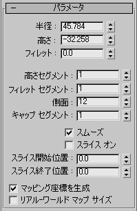 マップしたマテリアルを面取り円柱に適用するための座標を自動的に生成します。既定値ではチェックマークが付いています。