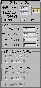 これらの編集ボックスは、フィレット サーフェスのシード値を調整します。フィレットをいく通りかの方法で構築できる場合、3ds Max ではシード値を使ってフィレット サーフェスの最も近いエッジが選択されます。