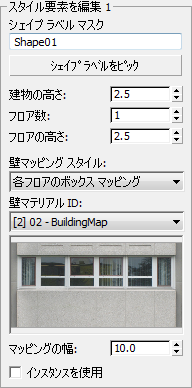 BOS 要素リストで選択した建物スタイルの設定が表示され、スタイルを適用するシェイプを選択できます。