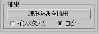 既定値の[コピー](Copy)が設定されている場合、抽出されたオブジェクトは読み込まれたオブジェクトのトップレベルのコピーです。[インスタンス](Instance)が設定されている場合、抽出されたオブジェクトは読み込まれたオブジェクトのインスタンスです。当初は、抽出されたオブジェクトは、読み込まれたオブジェクトと同じスペースを占めます。抽出されたオブジェクトを表示するには、抽出されたオブジェクト、読み込みサブオブジェクト、全体の NURBS モデルのいずれかを移動する必要があります。