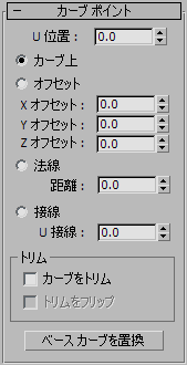 カーブ ポイントのサブオブジェクトが選択されている間、[カーブ ポイント](Curve Point)ロールアウトが表示されます。
