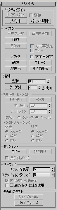 このロールアウトのコントロールについては、[選択](Selection)ロールアウト(編集可能パッチ)を参照してください。