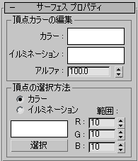 これらのボタンを使って、頂点をカラー値で選択するか、イルミネーション値で選択するかを決定します。