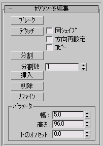 このロールアウトは壁オブジェクトを選択し、[セグメント](Segment)サブオブジェクト レベルを呼び出したときに表示されます。