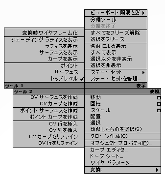 NURBS モデルを修正するためのクアッド メニュー