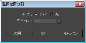 [エッジ](Edge)テンション値を増やすか、または減らすことができます。面分割の方法として[エッジ](Edge)(上記の説明を参照)がアクティブのときにのみ使用できます。