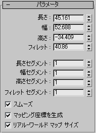 マップしたマテリアルを面取りボックスに適用するための座標を自動的に生成します。既定値ではチェックマークが付いています。