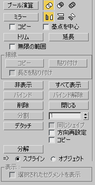- 各セグメントを別のスプラインかオブジェクトに変換して、選択したスプラインをブレークします。スプライン内の各セグメントに[デタッチ](Detach)を連続して使用した場合と同じ結果が短時間で得られます。