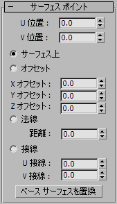サーフェス ポイント サブオブジェクトが選択されている間、[サーフェス ポイント](Surface Point)ロールアウトが表示されます。これらのコントロールはカーブ ポイント コントロールに似ています。