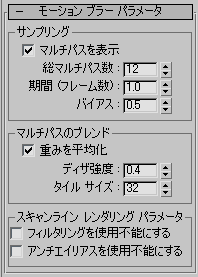 注: マルチパス モーション ブラー パラメータはアニメート可能です。