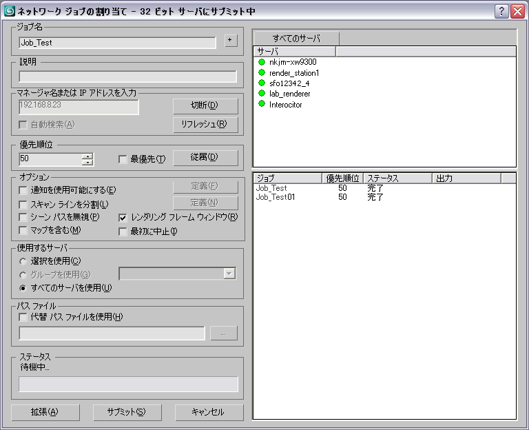 マネージャはサーバにジョブをサブミットし、サーバでレンダリングが開始します。