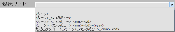 テキスト フィールドを使用して、新しいテンプレートを作成することができます。たとえば、<scene>_<dd>_<mm> を <dd>_<mm>_<scene> に変更できます。入力したすべてのテキストは、名前テンプレートの一部になります。3ds Max では、最大 10 個のカスタム テンプレートを保存できます(常にリストに表示される既定のテンプレートは含みません)。カスタム テンプレートの最大保存数に達した場合、新しいテンプレートを入力すると、最初に保存されたテンプレートがリストから削除されます。