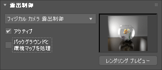 - チェックマークを付けると、シーンのバックグラウンドおよび環境のマップに露出制御が適用されます。チェックマークをはずすと、適用されません。既定値はオフです。