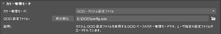- [OCIO - カスタム設定ファイル](OCIO - Custom Config File)には、[OCIO 設定ファイル(OCIO Config File)のパスを入力する必要があります。