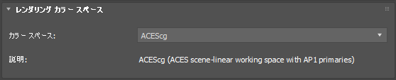 シェーディング計算が実行されるカラー スペース。カラー入力はレンダリングのためにこの空間に変換され、レンダーしたイメージは表示用にこの空間から変換されます。
