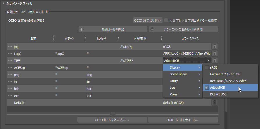 - OCIO ルールを読み込み(Import OCIO Rules)