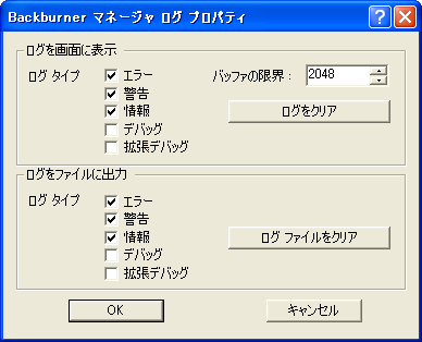 [ログを画面に](Log To Screen)のオプションは、[マネージャ](Manager)または[サーバ](Server)ウィンドウのリスト ウィンドウに表示するメッセージの種類を指定します。