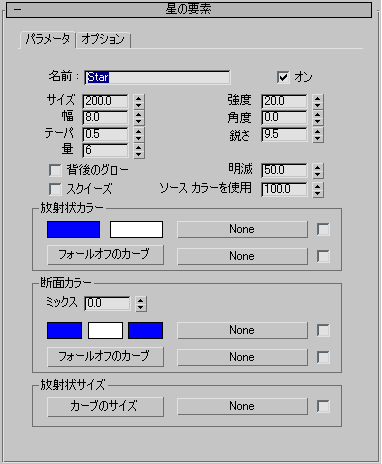 [星の要素](Star Element)ロールアウト、[パラメータ](Parameters)パネル