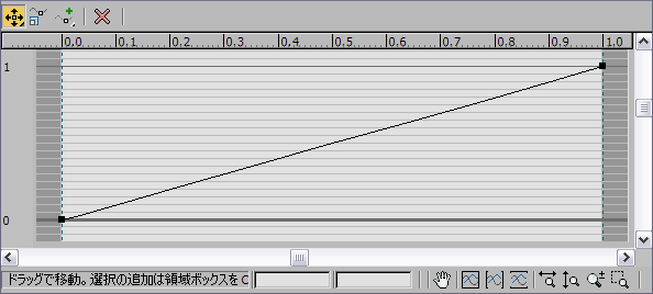 カーブに沿ってポイントを追加し、グラフ上の値 1 より上にポイントを移動することにより、効果の領域を更に拡張することができます。グラフ上の 1 と 0 の間にポイントを移動することにより、効果の領域を縮小することもできます。グラフ上の 0 以下にポイントを移動することにより、最後は効果の領域を削除できます。