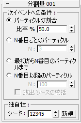 N[最初から N 番目のパーティクルまで](First N Particles)では分割するパーティクルの数を、[N 番目以降のパーティクル](Particles After N First)ではイベント内に保持するパーティクルの数を指定します。