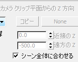 [コピー](Copy)[なし](None)ボタンをクリックしてカメラを選択した後、[コピー](Copy)をクリックすると、カメラのクリッピング平面を使用して、レンダリングして深度チャネル イメージ ファイルに入れる必要のあるシーンの部分が決定されます。